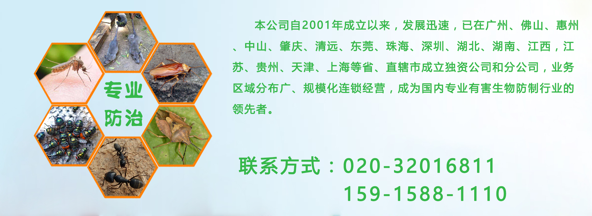 廣州億康環(huán)境科技有限公司專業(yè)從事有害生物防制、空氣治理、增香除味、清洗保潔、衛(wèi)生防疫消毒。本公司自成立以來,發(fā)展迅速,業(yè)務區(qū)域分布廣、規(guī)模化連鎖經(jīng)營,成為國內(nèi)專業(yè)有害生物防制行業(yè)的領先者。